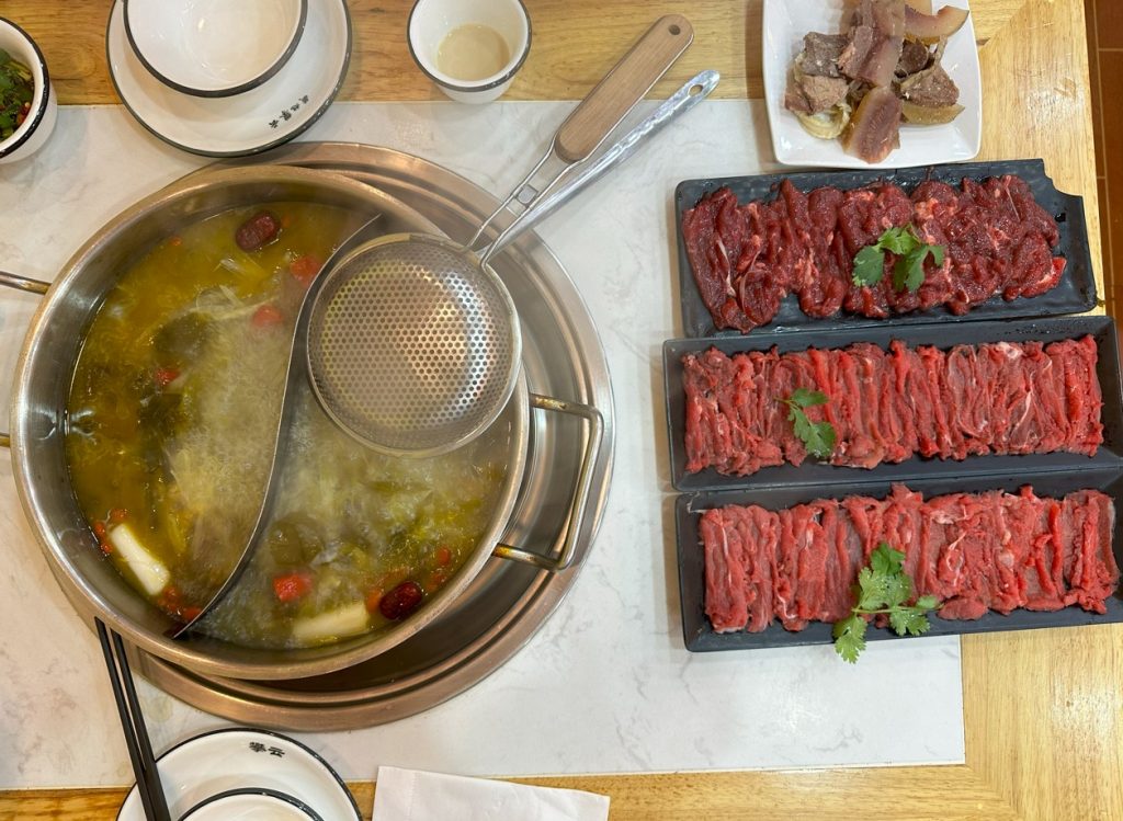 晚饭我们在一间火锅店吃了牦牛肉,品了甜茶,服务员还送了我们一条“哈达”,并对我们说了“扎西德勒”,感受到了西藏人的热情。