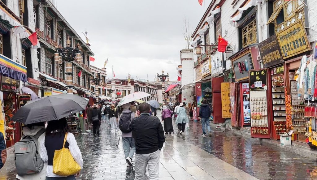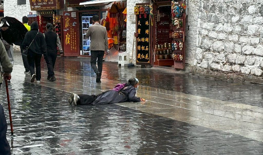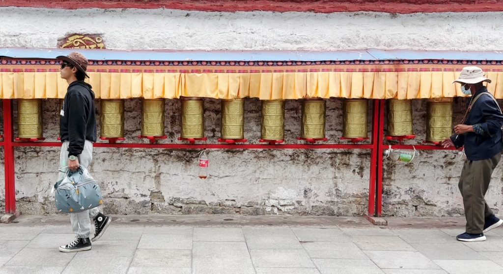 第一天打算到附近的布达拉宫和大昭寺走走逛逛,但是布达拉宫门票已经售完,只能沿旁边的公园绕一圈了。下午去大昭寺的时候,天气转阴,后又下起了雨。大昭寺里面除了去参观的人,还随处可以看到在巡逻的特警,此外,每隔一段距离可能要刷身份证过卡口。