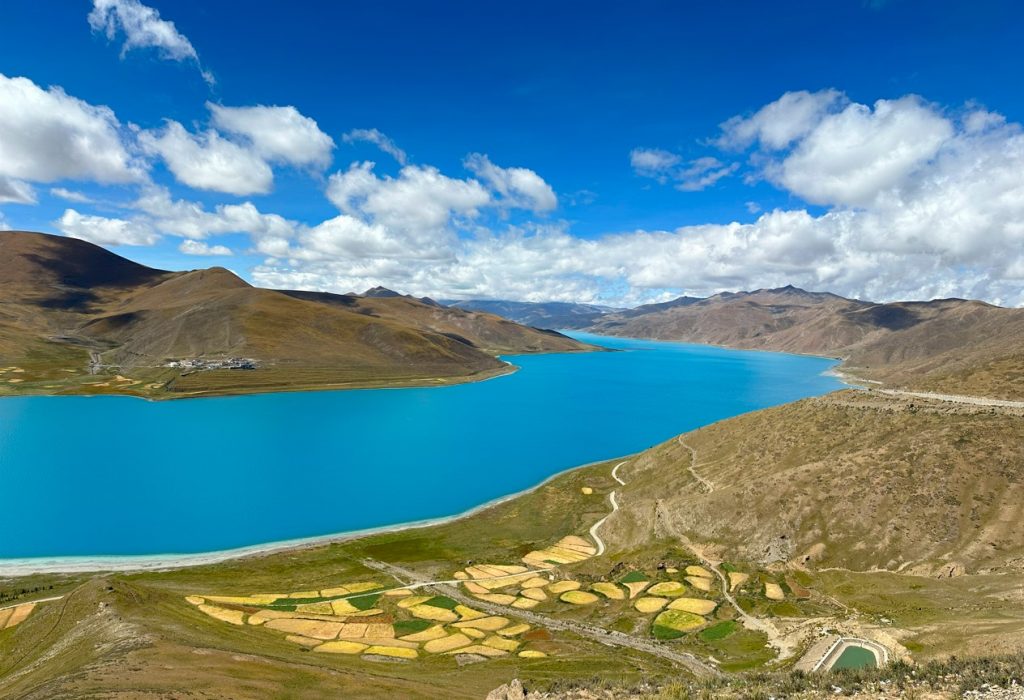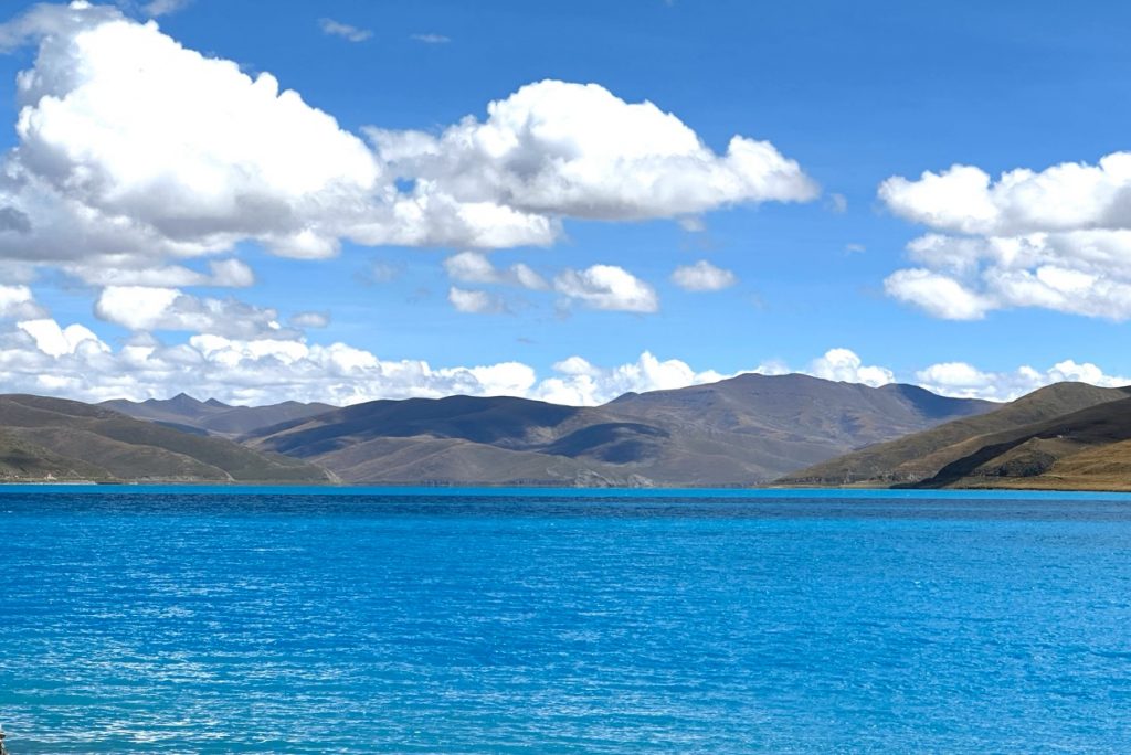 第二天终于迎来了一个阳光明媚的天气,我们去了羊卓雍措,那里碧水蓝天,景美如画。羊卓雍措距离拉萨市区有一百多公里,没有直达的大巴或公交可以前往,只能跟团或包车了,最终我们还是选择了包车。