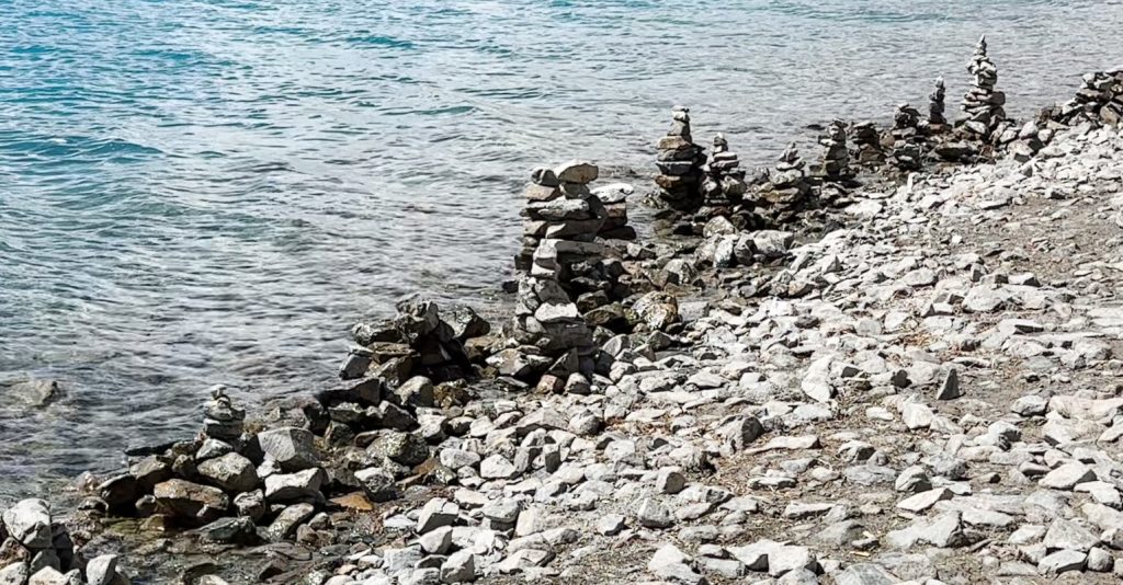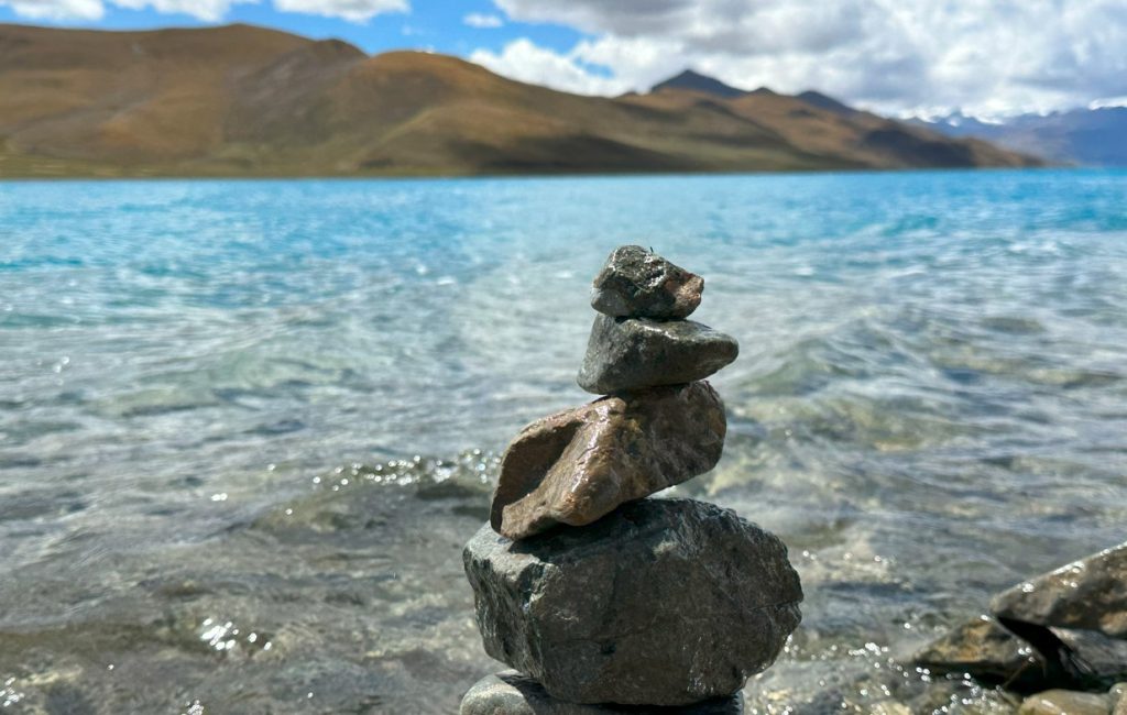 从拉萨到羊湖,大概两三个小时的车程。途中山路盘旋,蜿蜒曲折,饶了很多圈终于到了羊湖雍措山顶。放眼望去,清澈的湖水如镜子般,把蓝天倒映进了湖里,仿佛把湖水染成了天蓝色。我们又下到了湖边,边上可以见到一些牧民拉着他们的牦牛在跟游客拍照,还可以见到沿岸垒起的一个个“尼玛堆”。