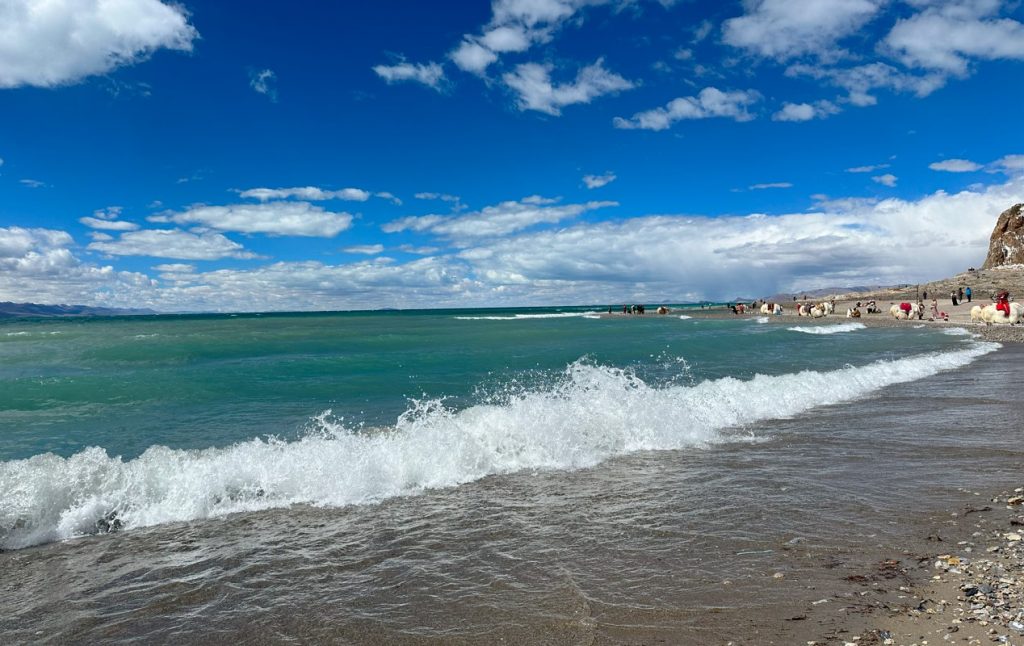 第三天依然是个好天气,我们跟团前往了纳木措,去看看这个西藏的第二大湖泊,中国的第三大咸水湖。在去纳木措前,导游送我们上到了海拔5190米的那根拉山口,这是我去过海拔最高的地方了。可能氧气比较稀薄,没走几步我便头痛欲裂,马上回到车上休息去了。接着便坐车至纳木措,再坐上景区的观光车到纳木措湖。在我的认知里边,一直以为只有海才有浪,见了纳木措湖后才知道,原来湖也有浪,果然还是需要出去走走。