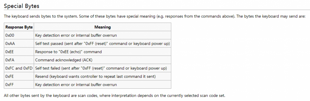 EC 8032有两个寄存器可用来向Host写数据,分别是KBHIKDOR(Keyboard数据),KBHIMDOR(Mouse数据)。当EC 8032写数据时,KBSTR中的OBF bit置1,若有启用IRQ1中断,则会给Host产生一个IRQ1的中断;同理若是写Mouse数据,OBF也会置1,若有启用IRQ12中断,则会给Host产生一个IRQ12的中断。Host可根据KBSTR中IBF判断是否有数据,有的话便从KBDOR(Keyboard或Mouse数据)读走,IBF则被清0。