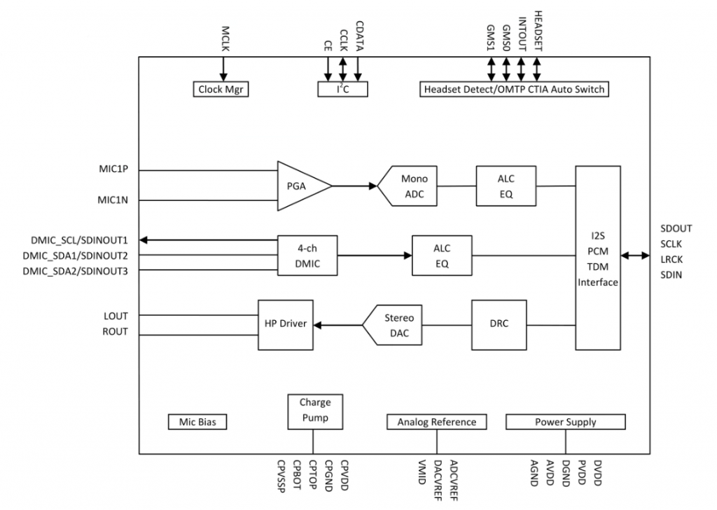 顺芯有ES8336、ES8326、ES8327等几款常用的编解码器,它们最大的区别在于麦克风的功能。8336设计之初是支持AMIC(模拟麦克风)和DMIC(数字麦克风)的,但最终只有AMIC功能可正常使用。而8326跟8327都只单独支持一种麦克风类型,前者是DMIC,后者是AMIC。
