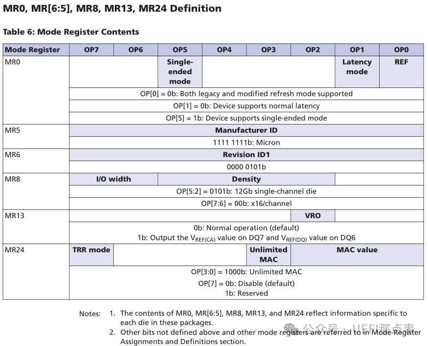 MR5是什么呢?翻了DRAM的手册,MR5是一个模式寄存器(Mode Register),定义的正是Manufacturer ID。