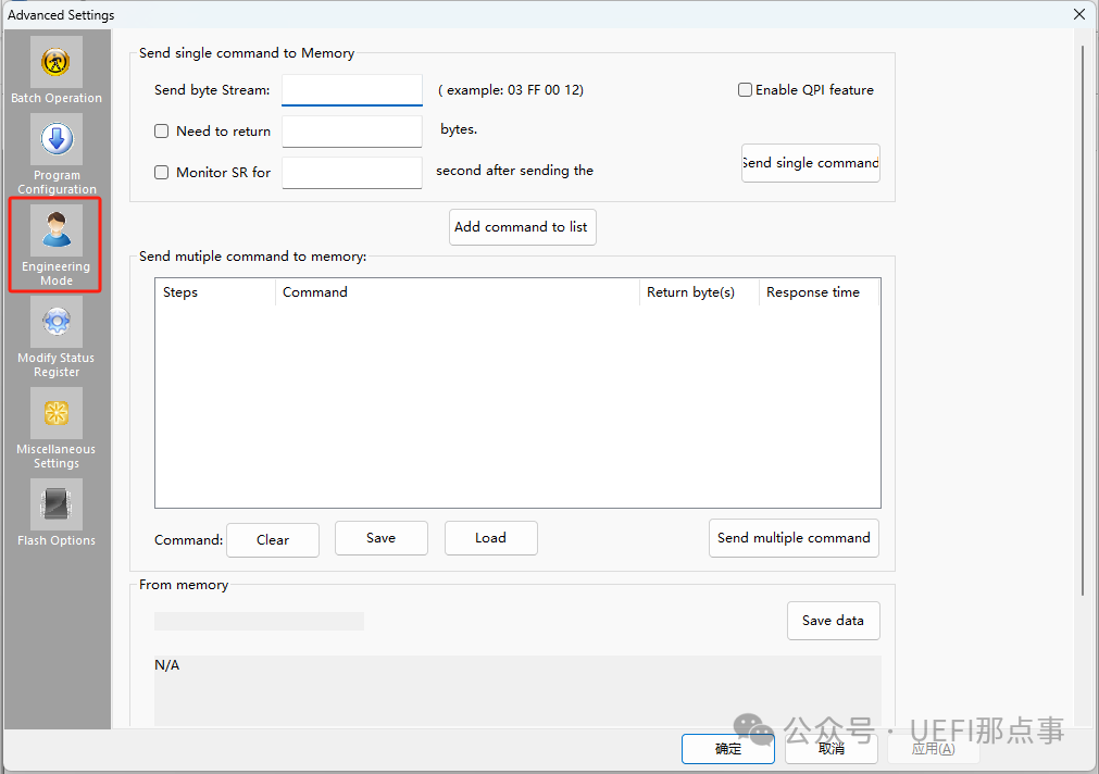 Dediprog 系列的烧录器相信很多的 BIOS 人都使用过,它提供了一个工程模式,可以手动给 SPI Flash 发送命令,执行某些操作。通过下面步骤启动工程模式界面: