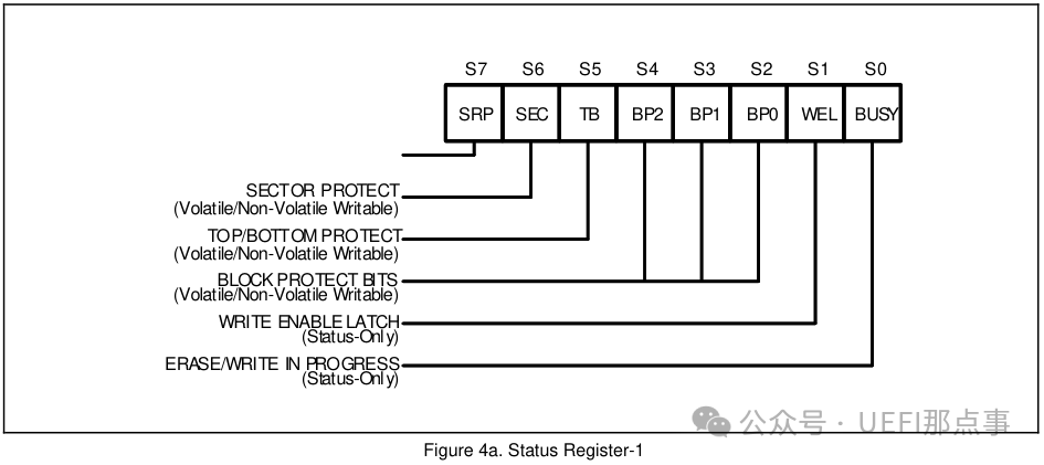 该 Flash 中有好几类的寄存器,但本文侧重于如何使用 Dediprog 来读写 Flash,所以不多描述了,为了方便演示,简单了解一下几个状态寄存器。