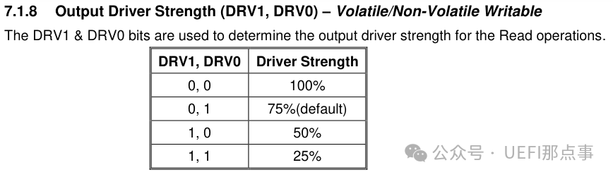 QE bit 为 1。3.将输出驱动强度设为 50%