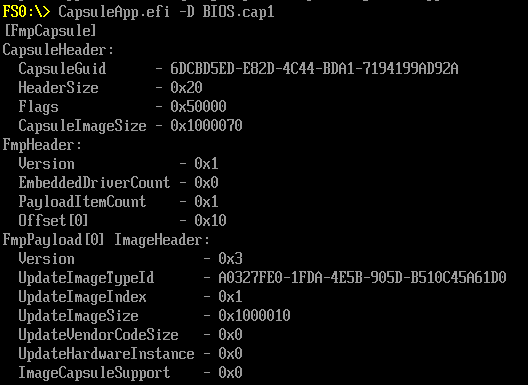 CapsuleApp.efi BIOS.cap # In-Memory CapsuleApp.efi BIOS.cap -OD # On-Disk