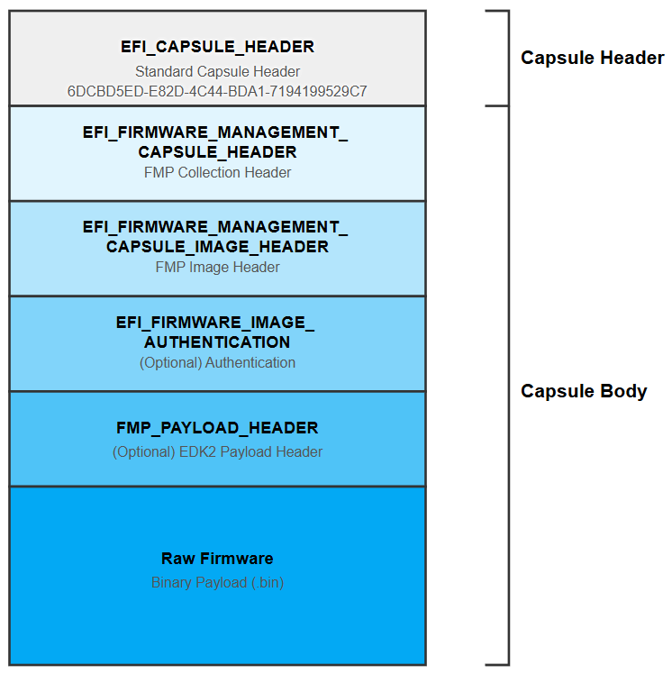 Capsule 文件本质上是一个带有特定文件头的二进制文件。对于现代固件更新,通常使用 FMP Capsule 格式。