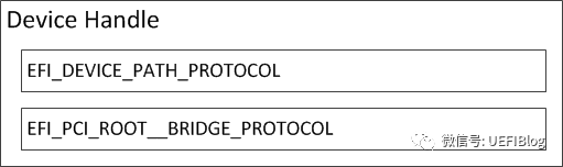 其他情况可见上文。PCI设备驱动不会使用PCI Root Bridge I/O协议访问PCI设备,而是会使用PCI总线驱动为PCI设备产生的PCI IO Protocol来访问PCI设备的IO/MEMORY空间和配置空间。PCI Root Bridge I/O协议(Protocol)是安装在RootBridge设备的句柄上(handle),同时在该handle上也会有表明RootBridge设备的DevicePath协议(Protocol),如下图所示