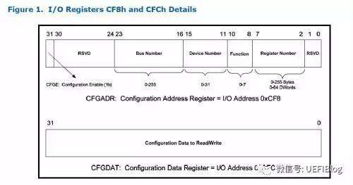 如上,在CONFIG_ADDRESS端口填入BDF,即可以在CONFIG_DATA上写入或者读出PCI配置空间的内容。