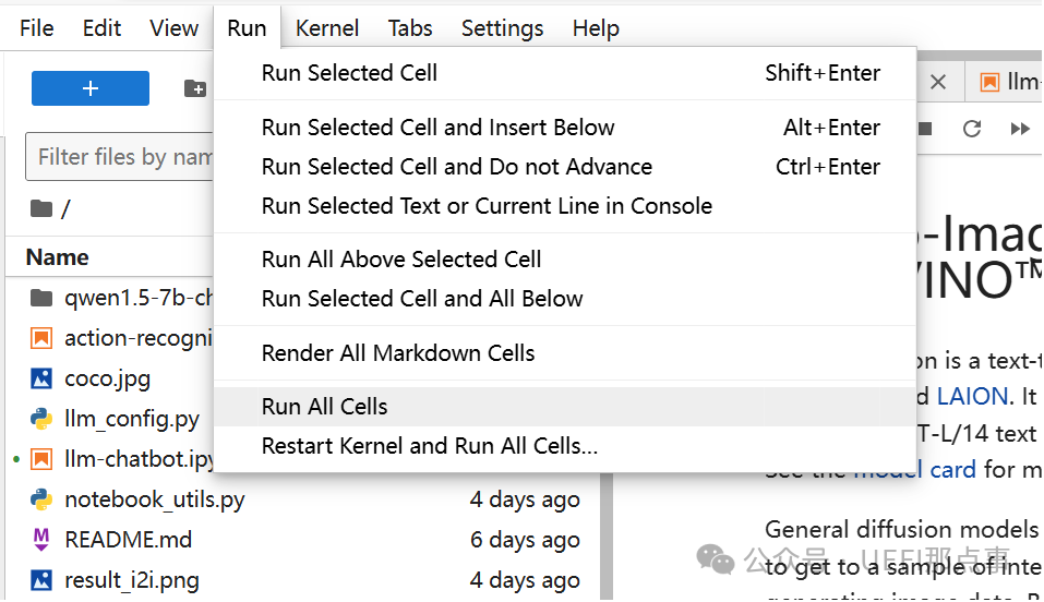 Github文档写得很详细:https://github.com/openvinotoolkit/openvino_notebooks/wiki/Windows,一步一步做就可以了。1-8是配置环境,9是启动一个例子,比如我想要部署一个文生图模型,那就执行:
