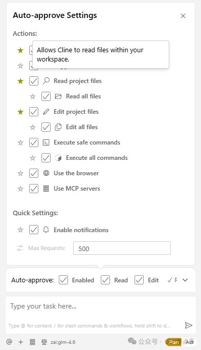配置完API,返回主界面,展开 Auto-Approve,全部勾选: