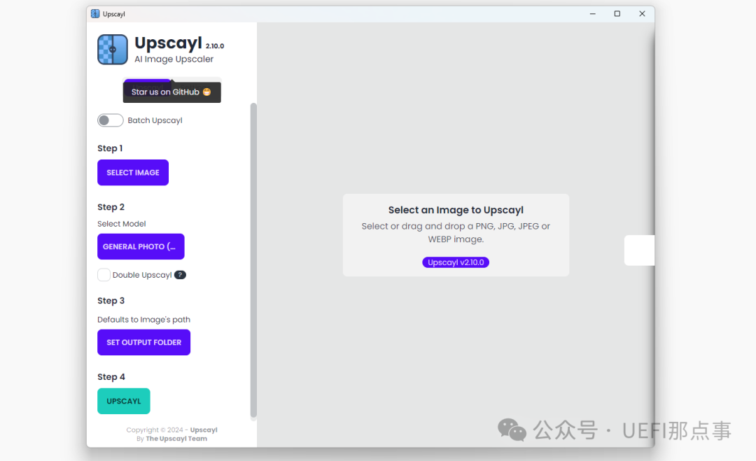 这个工具叫upscayl,它利用先进的人工智能算法,可以放大和增强低分辨率的图像。软件的使用非常简单,只要将图片拖进界面,然后点击 upscayl 按钮就能生成了,生成的时间取决于图片的大小,图片越大,时间越长。