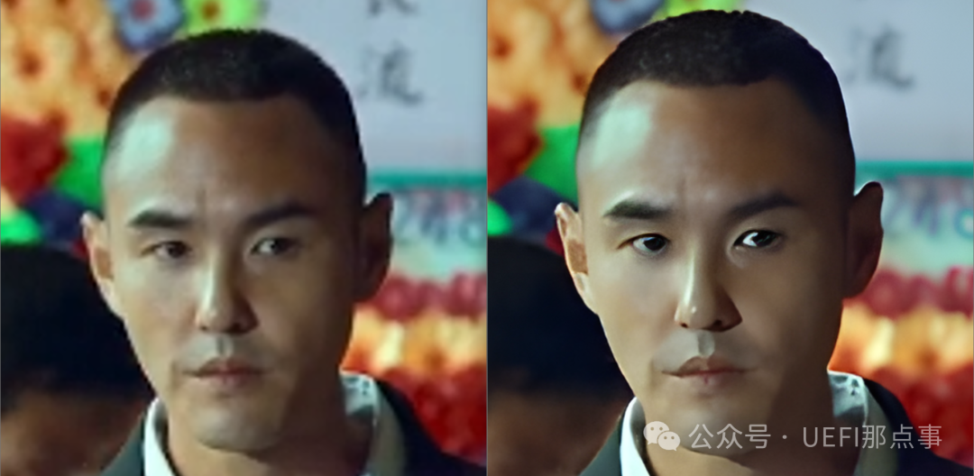 再测试一下对人像的放大,下图中,左边是原图,右边是重新生成的。